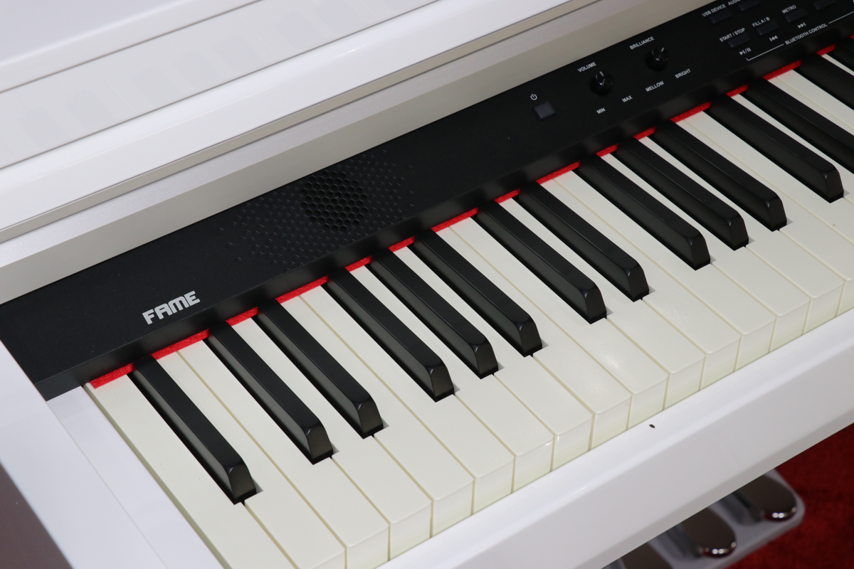Das Piano schneidet so gut ab, weil es an sich in die Preisklasse für weit über 1000,- Euro gehört. Nur durch unseren Direkteinkauf ab Werk können wir Ihnen dieses Instrument so günstig anbieten. Seit über 20 Jahren kaufen wir FAME Pianos von einem der größten Elektronik-Hersteller in Fernost, der auch für andere bekannte Namen Instrumente produziert. Besonders hervorzuheben ist die hohe Qualität.