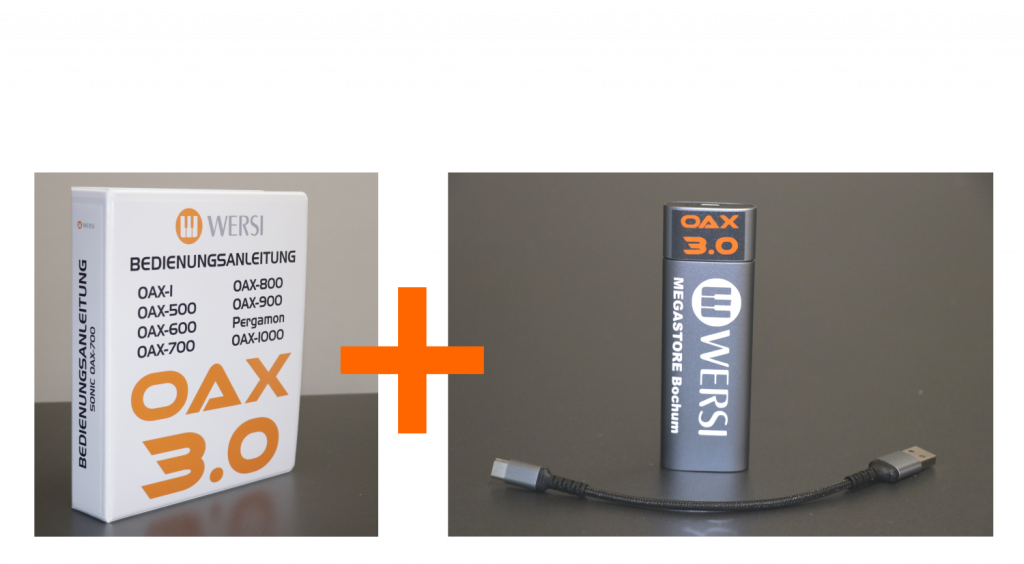 Basis-Software-Paket OAX-3.0 inkl. WERSIVISION, bestehend aus 6 Installationsdateien, Bedienungsanleitung (PDF), Programmieranleitung (PDF). OAX-Erweiterung "WERSI-Chord" inkl. Bedienungsanleitung, OAX-Erweiterung "LOWREY-Organ" inkl. Bedienungsanleitung. Die Activation-Key´s (werden nach Angabe der Instrumenten-ID generiert und separat versendet !) Statt 1.147,00 EUR nur 999,00 EUR.